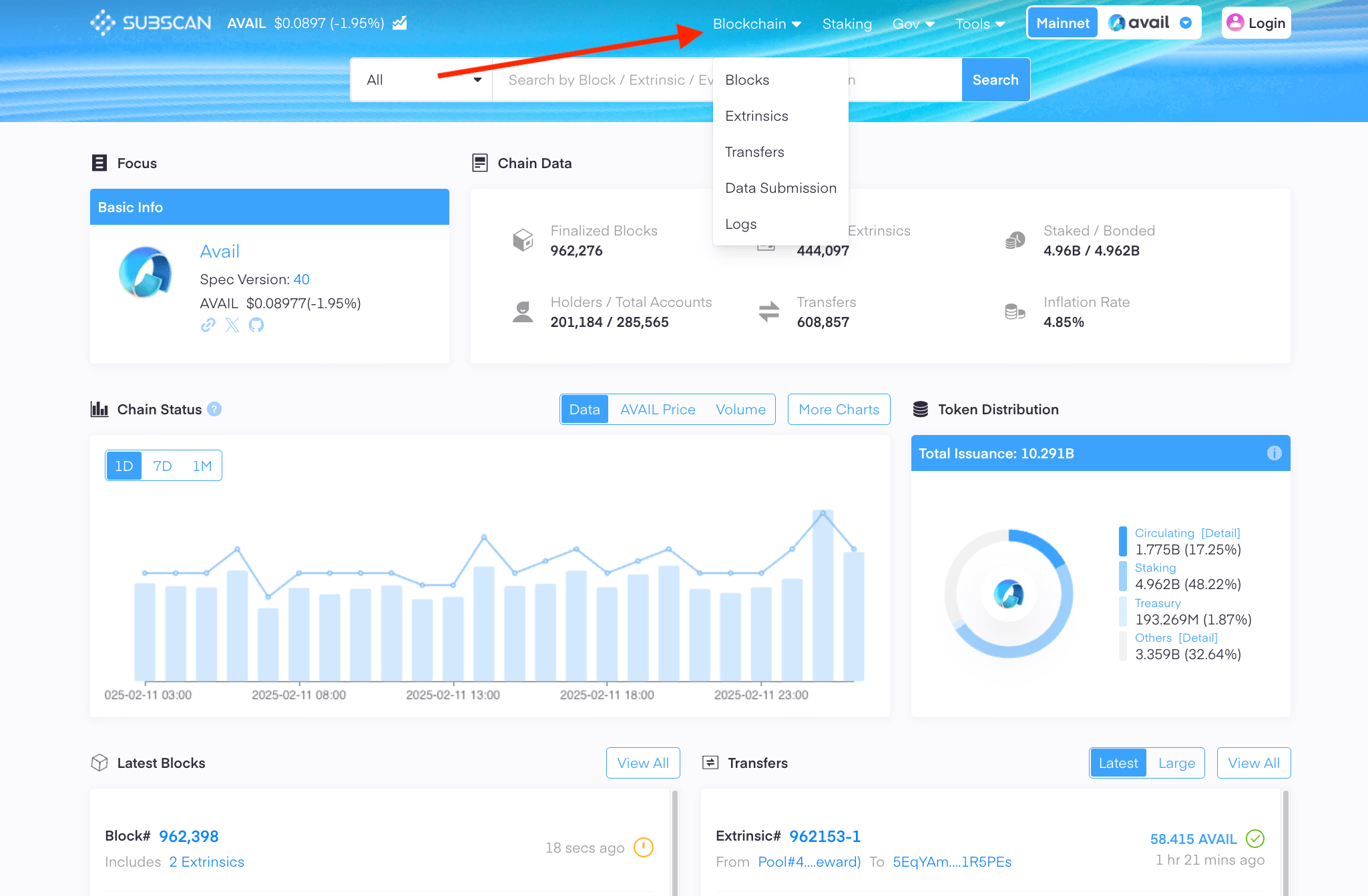 Data AvailabilityLearn more about AvailGet started with Avail's explorers