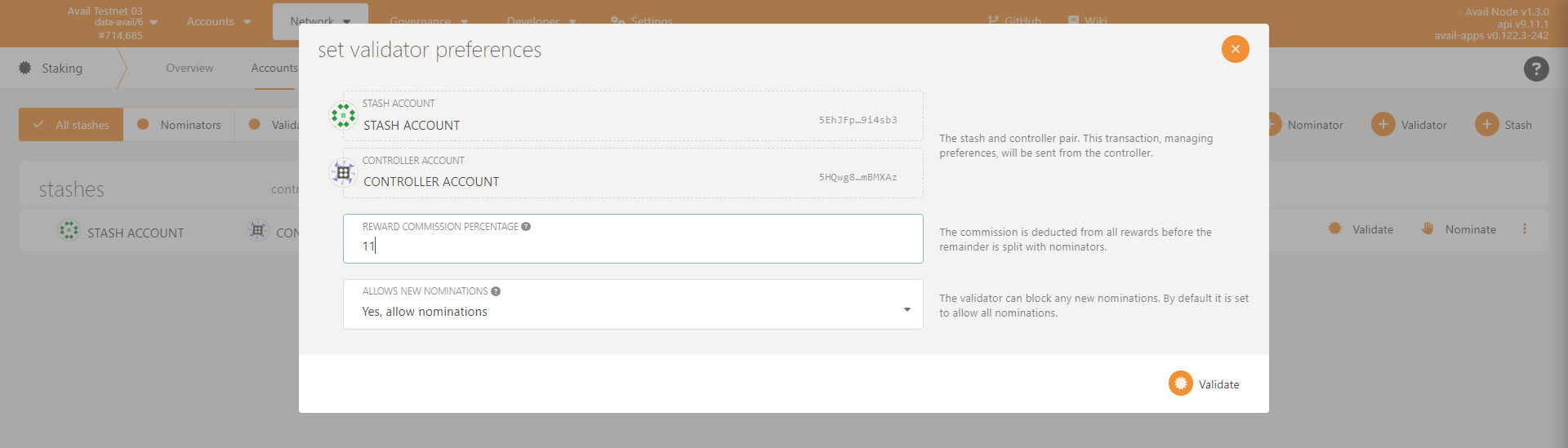 Before you can become an active validator, you need to bond your funds to your node. This involves creating two separate Avail accounts: a stash account for holding your funds and a controller account for managing staking actions.