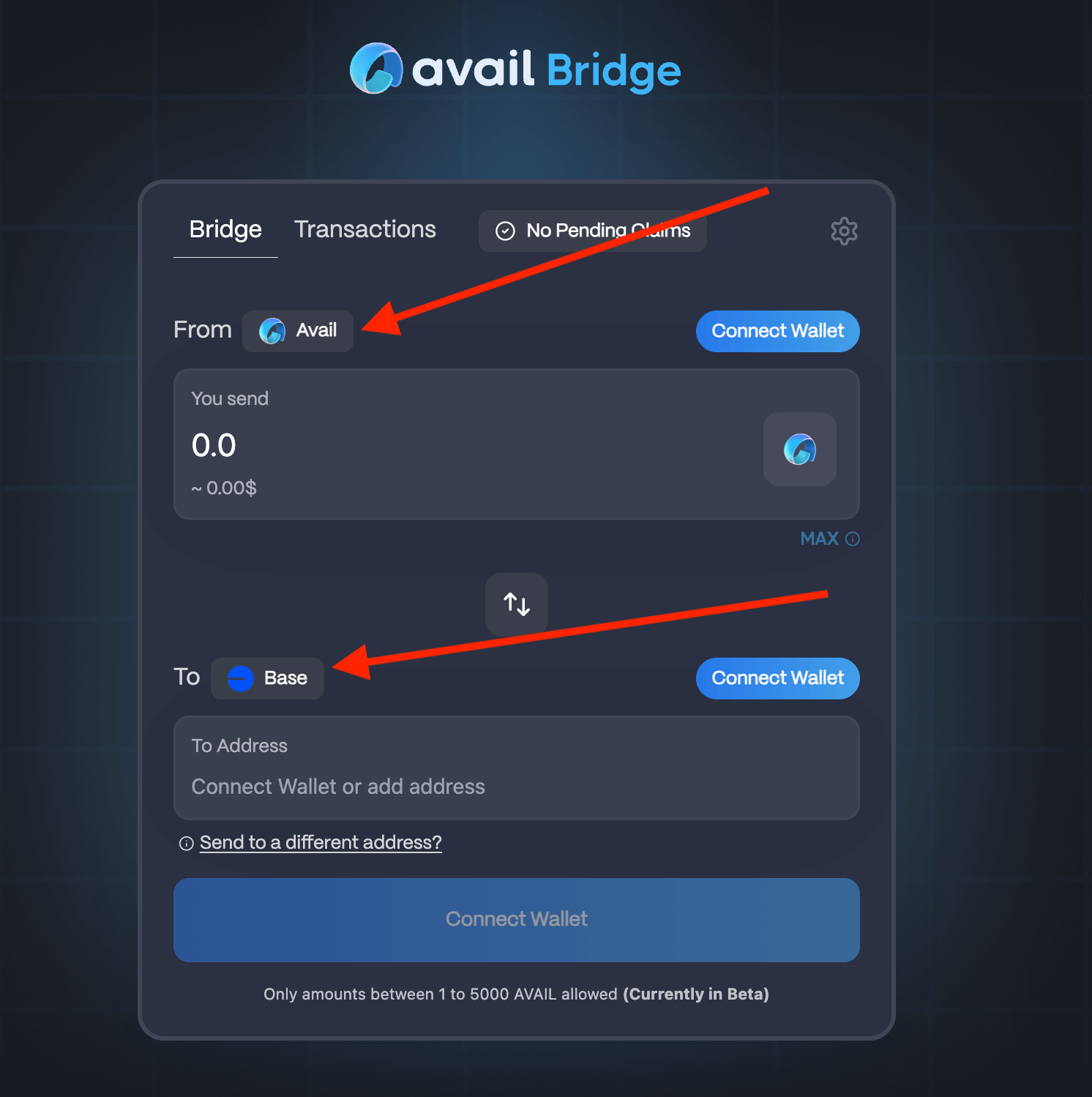 4. Or vice-versa, if you want to bridge from Base to Avail.
